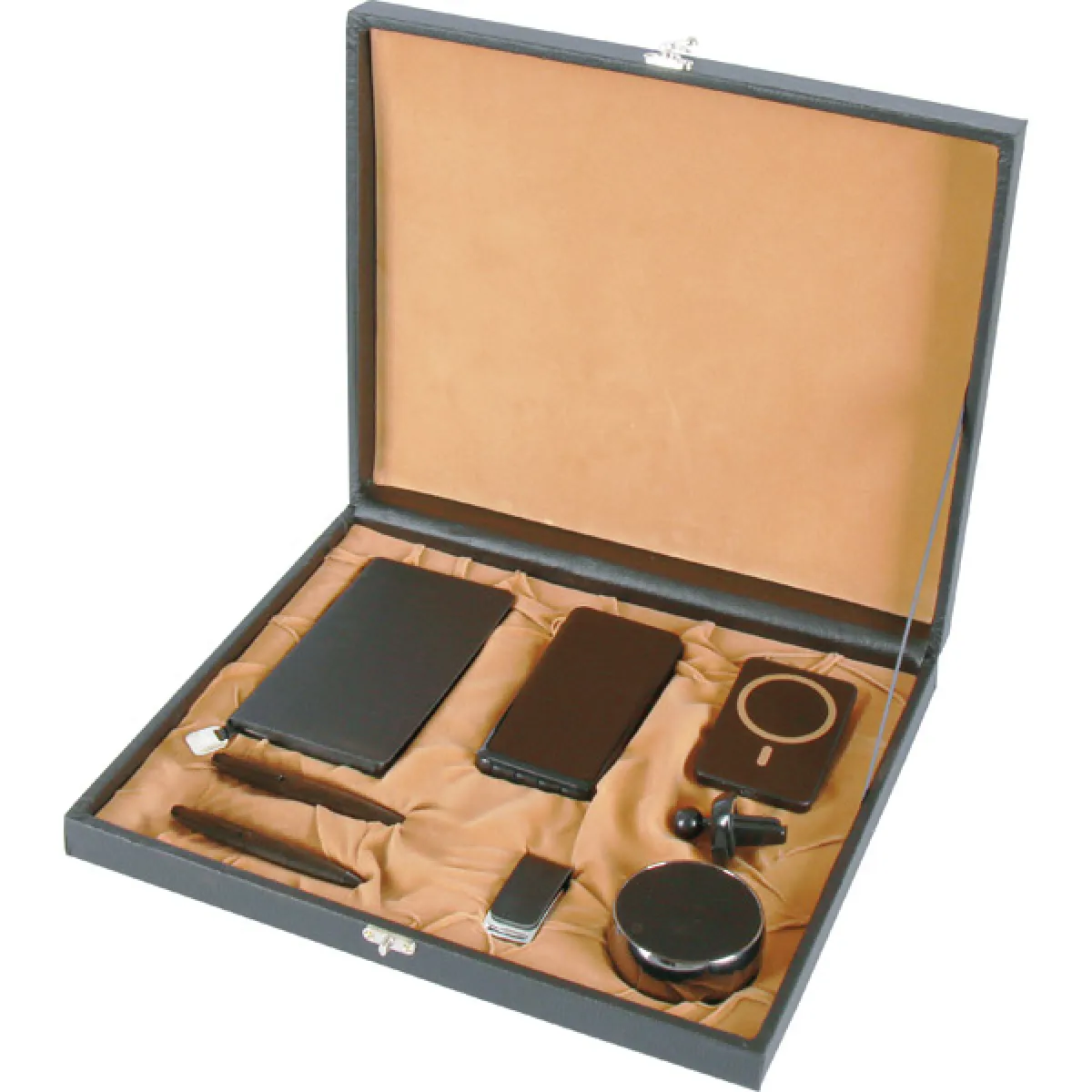 * Termo Deri Defter 13 x 21 cm (Kadıköy) * Powerbank 5.000 mAh (PWB-905) / Işıklı Markalama * Metal Kalem Roller ve Tükenmez Kalem (0555-340 / 0555-345) * Metal ve Deri Anahtarlık (AN-5085) * USB Bellek 16 GB (8113) * Cüzdan Deri Kartlık * Özel Kutu